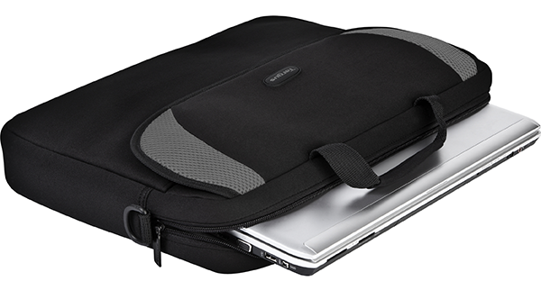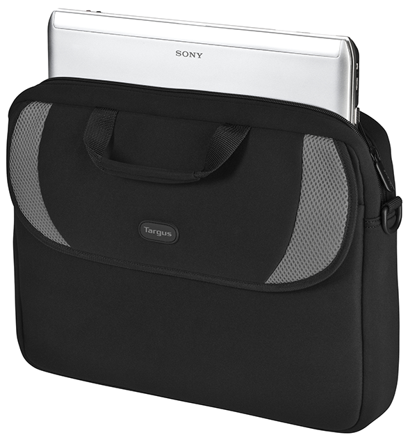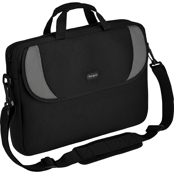 TARGUS Etui en neoprene pour ordinateur portatif allant jusqu'à 16 pouces avec courroie de transport pour l'utiliser comme un sac de transport conventionnel. Couleur: noir et gris Dimension extérieur: 16.54 X 13.39 X 2.36 po Dimension intérieur: 15.25 X 10.5 X 1.65 po